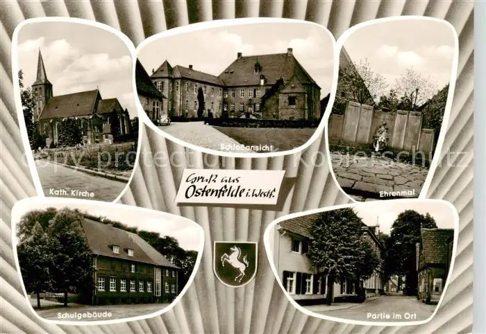 AK / Ansichtskarte Ostenfelde_Oelde Kirche Schloss Ehrenmal Schule Partie im Ort Ostenfelde_Oelde