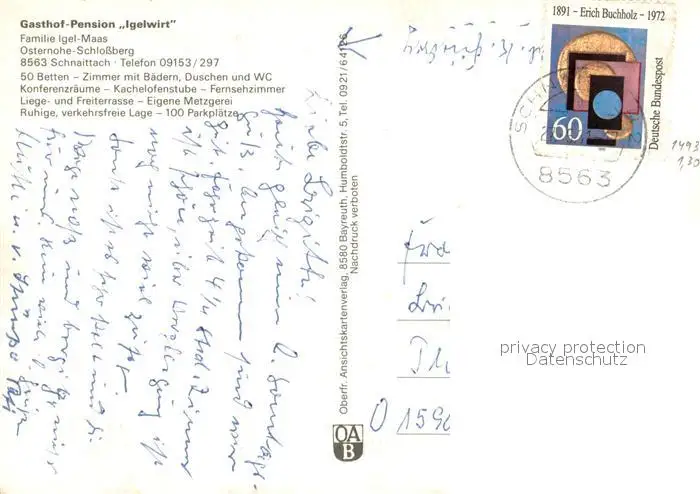 Osternohe Gasthof Pension Igelwirt Restaurant Scheune Fachwerk Schlossberg Panorama Osternohe postalisch gelaufen 1991 Erhaltung siehe scans [FriedD77] Frierer