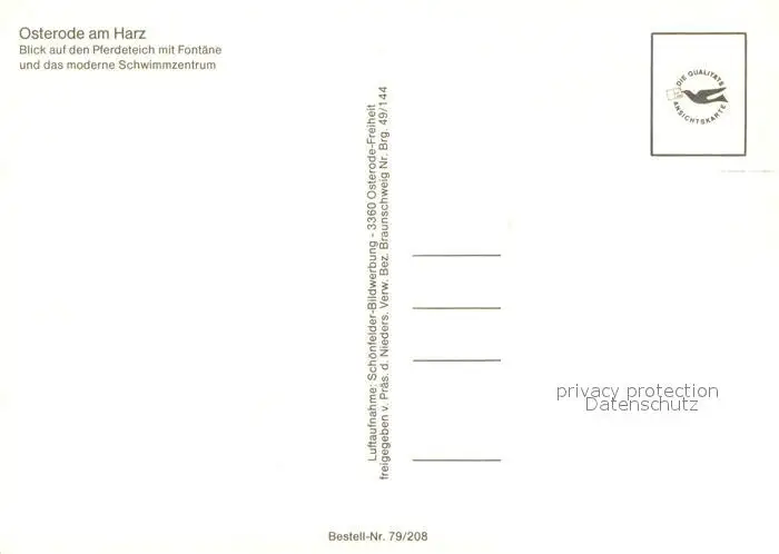 Osterode_Harz Fliegeraufnahme mit Pferdeteich Fontaene und Schwimmzentrum Osterode_Harz postalisch nicht gelaufen nach 1965 Erhaltung siehe scans [WerneD78] WernPID7