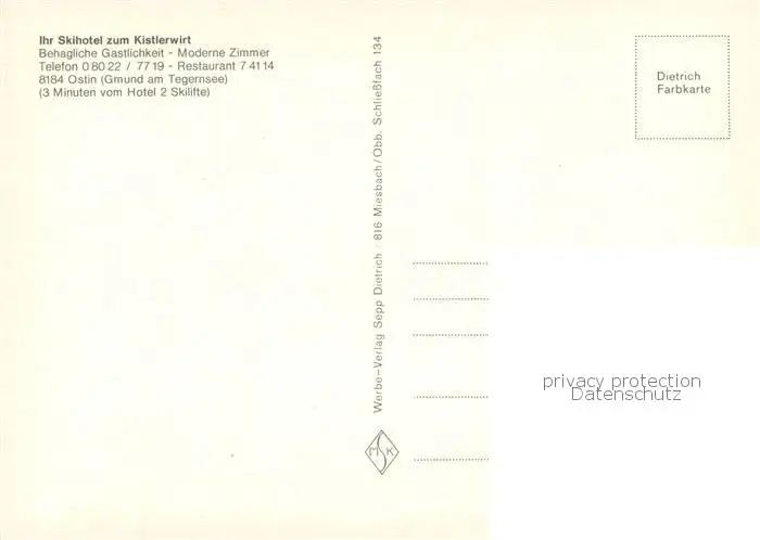 Ostin_Tegernsee Skihotel Zum Kistlerwirt Winter Ostin_Tegernsee postalisch nicht gelaufen nach 1965 Erhaltung siehe scans [LiesaD40] LiesID40