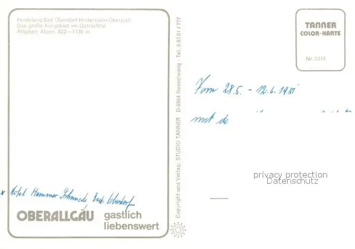 Ostrachtal Almabtrieb Oberjoch Hindelang Bad-Oberdorf Hinterstein Ostrachtal postalisch nicht gelaufen 1981 Erhaltung siehe scans [LiesaD40] LiesID40