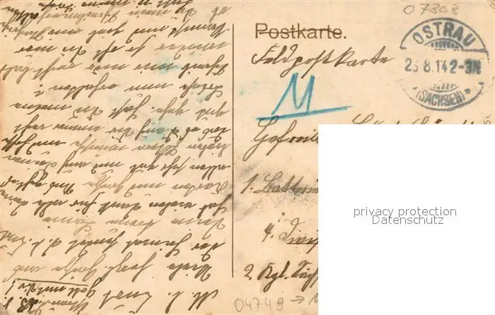 Ostrau_Sachsen Gasthof zum Wilden Mann Ostrau_Sachsen postalisch gelaufen 1914 Feldpost auf Karte (Motiv) Erhaltung siehe scans [WerneD78] Feldpost auf Karte (Motiv) WernPID7