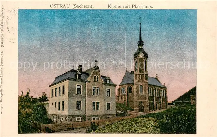 AK / Ansichtskarte Ostrau_Sachsen Kirche mit Pfarrhaus Ostrau_Sachsen