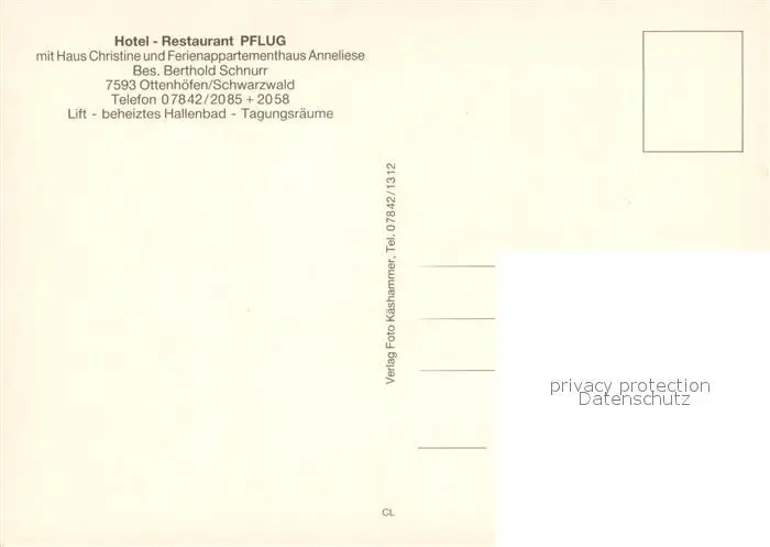 Ottenhoefen_Schwarzwald Hotel Restaurant Pflug Ferienappartements Hallenbad Panorama Ottenhoefen Schwarzwald postalisch nicht gelaufen nach 1965 Erhaltung siehe scans [FriedD77] Frierer