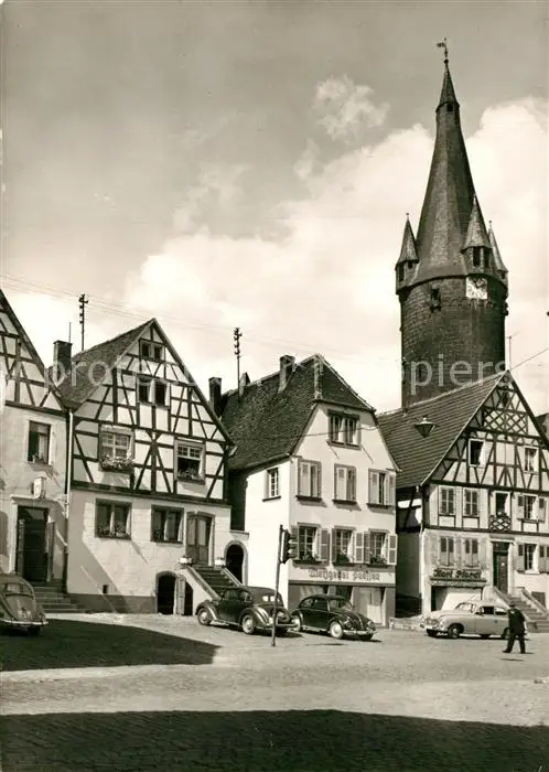 Ottweiler Rathausplatz Fachwerkhaeuser Kirchturm Ottweiler postalisch nicht gelaufen 1985 Erhaltung siehe scans [FriedD77] Frierer