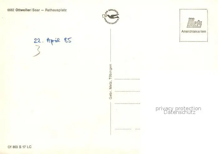 Ottweiler Rathausplatz Turm Fachwerkhaeuser Ottweiler postalisch nicht gelaufen 1985 Erhaltung siehe scans [FriedD77] Frierer
