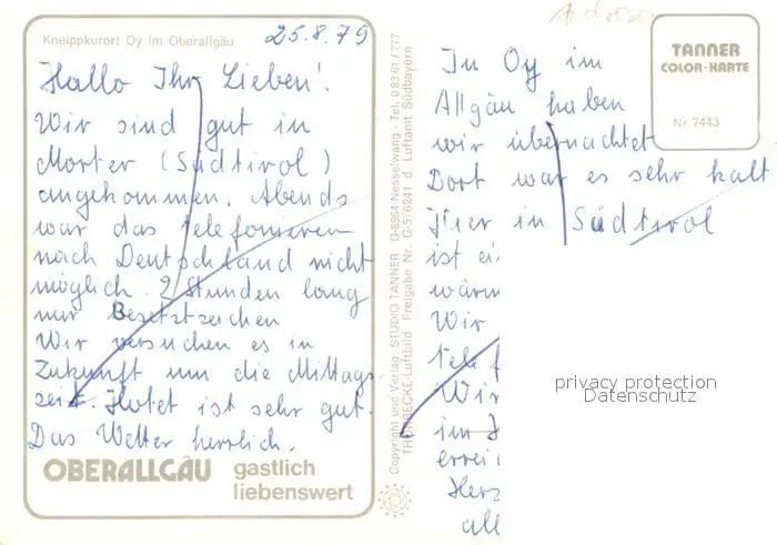 Oy Kneippkurort Alpenpanorama Oy postalisch nicht gelaufen 1979 Fliegeraufnahme Erhaltung siehe scans [FriedD77] Fliegeraufnahme Frierer
