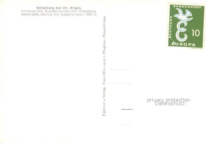 Oy-Mittelberg mit Hochplatte Branderschrofen Hoh Straussberg Geierkoepfe Saeuling und Zugspitzmassiv Oy-Mittelberg postalisch nicht gelaufen 1921-1965 Erhaltung siehe scans [WerneD78] WernPID7