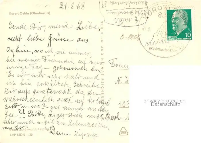 Oybin Ansicht vom Berg Oybin aus Oybin postalisch gelaufen 1968 Erhaltung siehe scans [FriedD77] Frierer