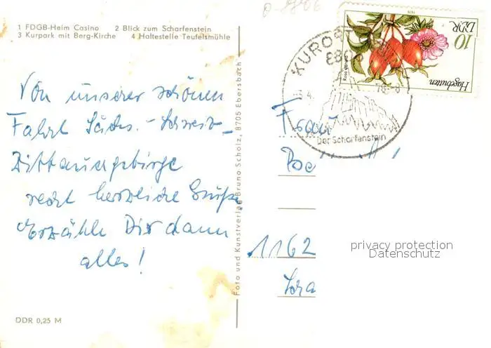 Oybin FDGB Heim Casino Landschaftspanorama Scharfenstein Kurpark Bergkirche Haltestelle Teufelsmuehle Zittauer Gebirge Oybin postalisch gelaufen 1978 Erhaltung siehe scans [FriedD77] Frierer