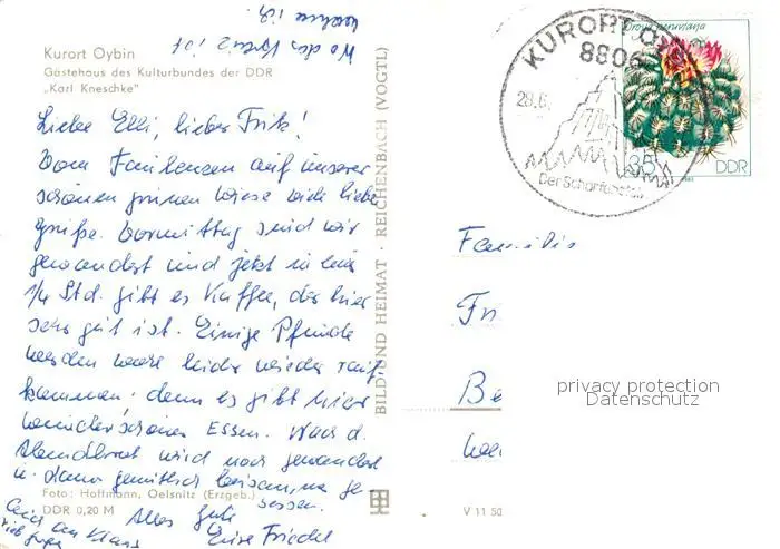 Oybin Gaestehaus des Kulturbundes der DDR Karl Kneschke Oybin postalisch gelaufen 1980 Erhaltung siehe scans [FriedD77] Frierer