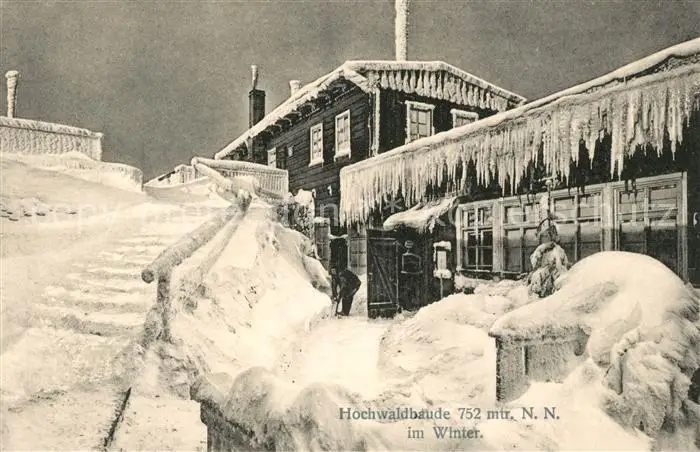 Oybin Hochwaldbaude im Winter Eiszapfen Zittauer Gebirge Oybin postalisch nicht gelaufen 1912 Erhaltung siehe scans [FriedD77] Frierer