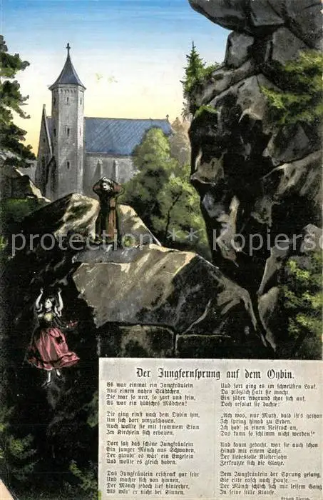 AK / Ansichtskarte Oybin Jungfernsprung auf dem Oybin Kirche Kuenstlerkarte Oybin