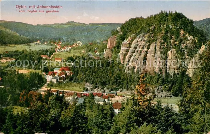 AK / Ansichtskarte Oybin Panorama Berg Oybin Johannisstein vom Toepfer aus gesehen Zittauer Gebirge Oybin