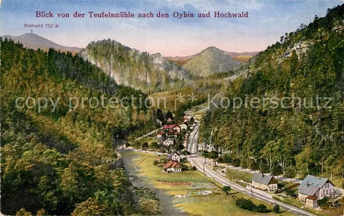 AK / Ansichtskarte Oybin Panorama Blick von der Teufelsmuehle nach Berg Oybin und Hochwald Zittauer Gebirge Oybin