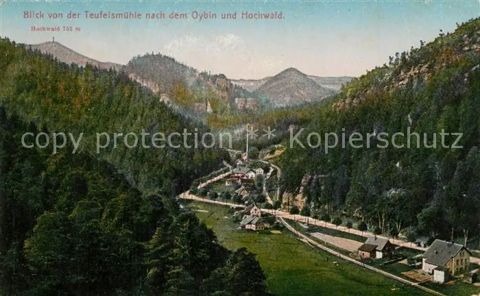 AK / Ansichtskarte Oybin Panorama Blick von der Teufelsmuehle nach Berg Oybin und Hochwald Zittauer Gebirge Oybin
