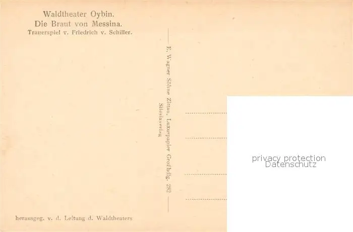 Oybin Waldtheater Die Braut von Messina Trauerspiel von Friedrich Schiller Oybin postalisch nicht gelaufen bis 1920 Erhaltung siehe scans [FriedD77] Frierer