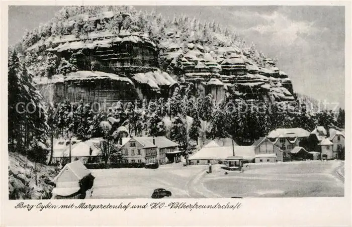 Oybin Winterlandschaft mit Berg Oybin Margaretenhof HO Voelkerfreundschaft Zittauer Gebirge Oybin postalisch nicht gelaufen 1954 Erhaltung siehe scans [FriedD77] Frierer
