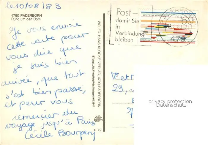 Paderborn Rund um den Dom Fliegeraufnahme Paderborn postalisch gelaufen 1983 Erhaltung siehe scans [FriedD77] Frierer