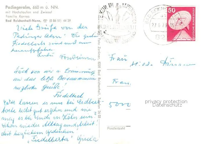 Padingeralm_660m_Bad Reichenhall mit Hochstaufen und Zwiesel postalisch gelaufen 1979 Erhaltung siehe scans [FriedD77] Frierer