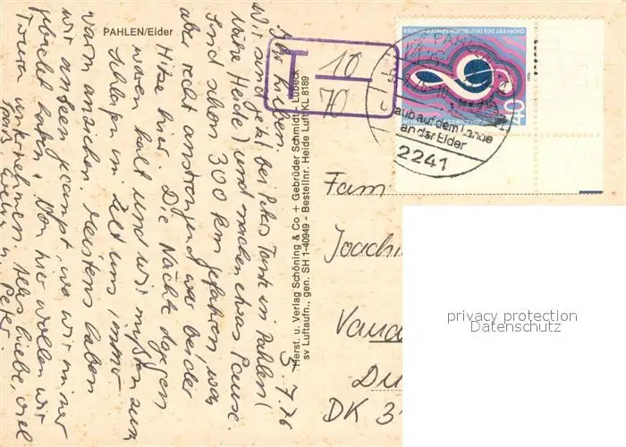 Pahlen an der Eider Fliegeraufnahme Pahlen postalisch gelaufen 1976 Erhaltung siehe scans [FriedD77] Frierer