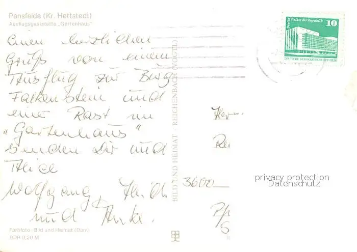 Pansfelde Ausflugsgaststaette HOG Gartenhaus Gastraeume Pansfelde postalisch gelaufen nach 1965 Erhaltung siehe scans [WerneD78] WernPID7