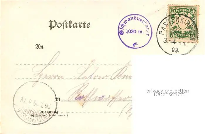 Partenkirchen Gschwandnerbauer Partenkirchen postalisch gelaufen 1903 Erhaltung siehe scans [LiesaD40] LiesID40