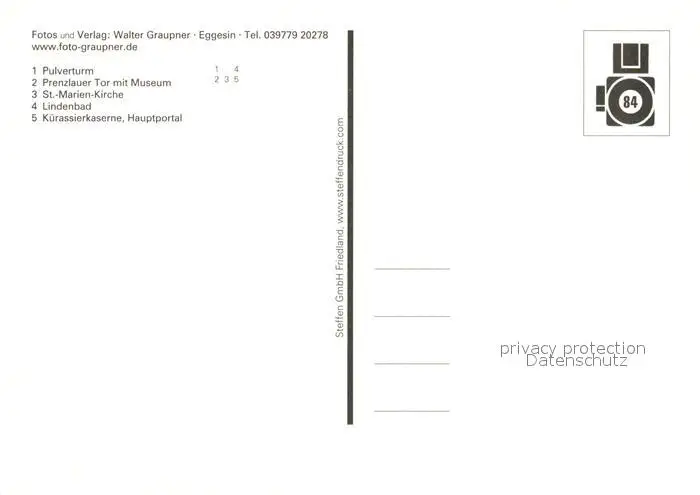 Pasewalk_Mecklenburg_Vorpommern Pulverturm Prenzlauer Tor Museum Kirche Freibad Kaserne Pasewalk_Mecklenburg postalisch nicht gelaufen nach 1965 Erhaltung siehe scans [FriedD77] Frierer