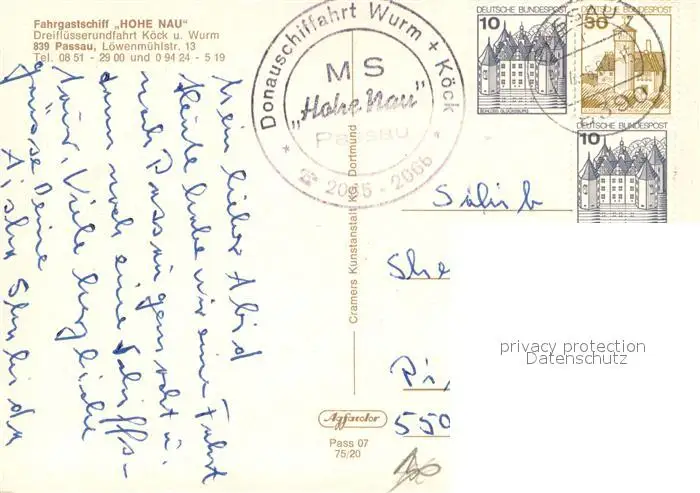 Passau Fahrgastschiff Hohe Nau Inneres Passau postalisch gelaufen nach 1965 Erhaltung siehe scans [WerneD78] WernPID7