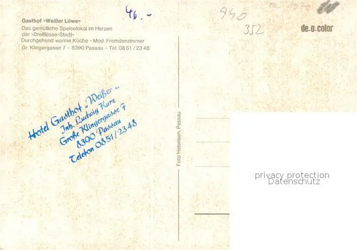 Passau Gasthof Weisser Loewe Gastraeume Zimmer Passau postalisch nicht gelaufen nach 1965 Erhaltung siehe scans [WerneD78] WernPID7