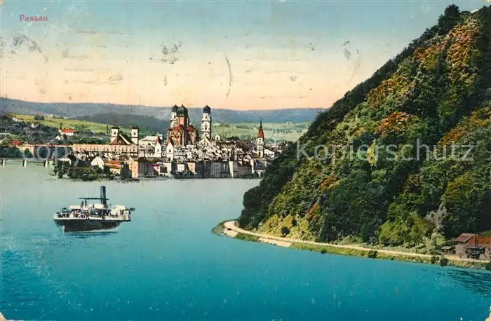 Passau Panorama Zusammenfluss von Inn Donau und Ilz Dampfer Passau postalisch gelaufen 1917 Erhaltung siehe scans [FriedD77] Frierer