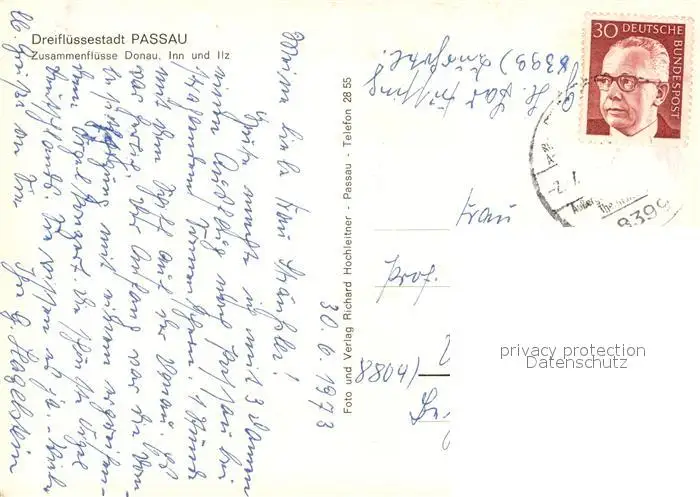Passau Zusammenfluss Donau Passau postalisch gelaufen 1973 Erhaltung siehe scans [KathaD81] Kathoren