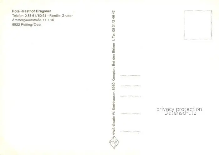 Peiting Hotel Gasthof Dragoner Peiting postalisch nicht gelaufen nach 1965 Erhaltung siehe scans [FriedD77] Frierer