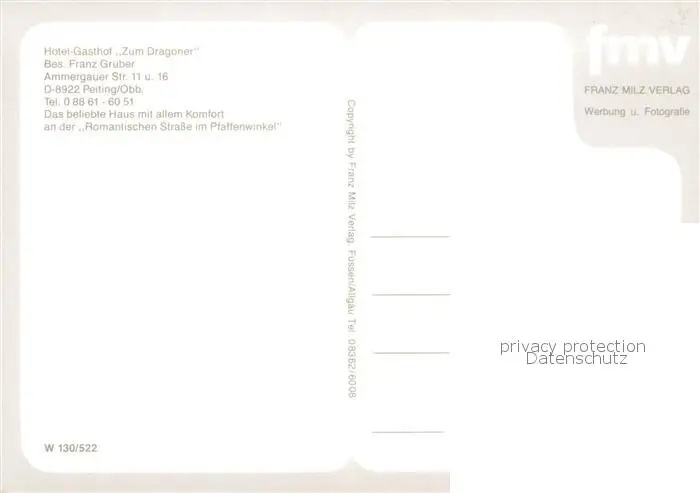 Peiting Pfaffenwinkel Hotel Gasthof zum Dragoner Kirche Peiting postalisch nicht gelaufen nach 1965 Erhaltung siehe scans [WerneD78] WernPID7