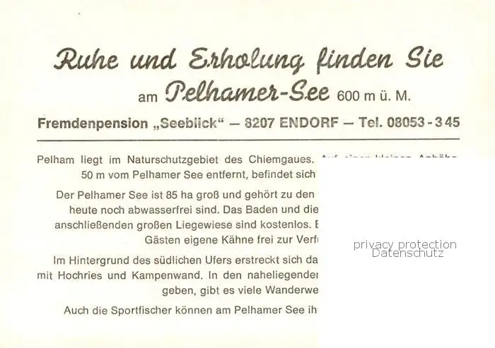 Pelham_Oberbayern Pension Seeblick Panorama Pelhamer See Alpen Pelham Oberbayern postalisch nicht gelaufen nach 1965 Werbekarte (keine Postkarte) Erhaltung siehe scans [FriedD77] Werbekarte (keine Postkarte) Frierer
