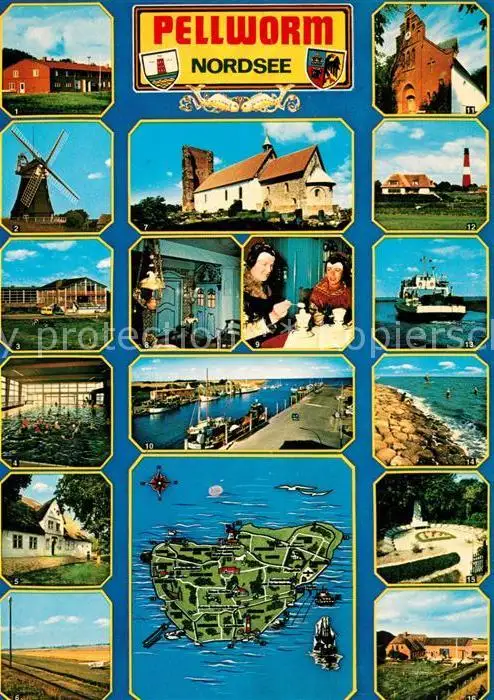 AK / Ansichtskarte Pellworm Alte Kirche Windmuehle Leuchtturm Faehre Wellenbad Hafen Pellworm