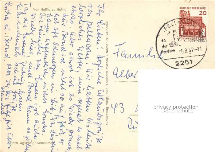 Pellworm Halligen der Nordsee Faehre Pellworm postalisch gelaufen 1967 Erhaltung siehe scans [FriedD77] Frierer