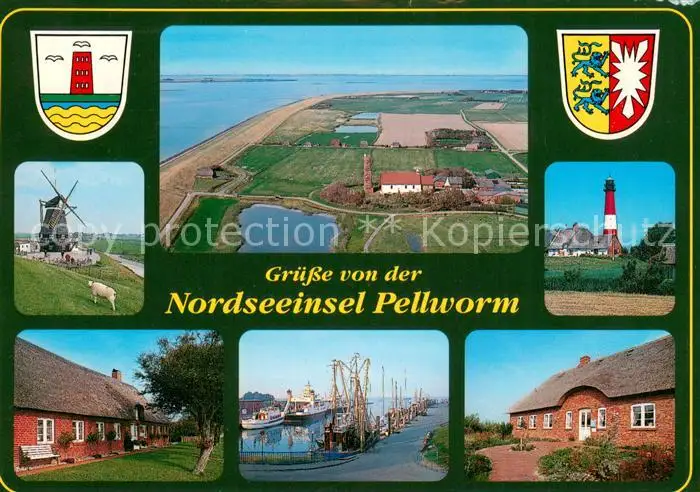 AK / Ansichtskarte Pellworm Windmuehle Fliegeraufnahme Leuchtturm Fischereihafen Friesenhaeuser Pellworm