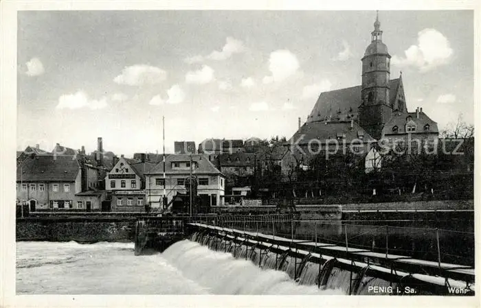 AK / Ansichtskarte Penig Kirche Flusswehr Penig
