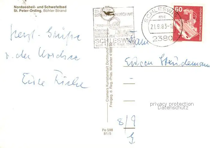 Peter-Ording_St Fliegeraufnahme Boehler Strand Peter-Ording_St postalisch gelaufen 1983 Erhaltung siehe scans [KathaD81] Kathoren