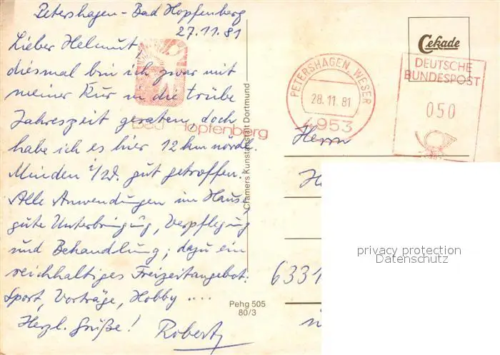 Petershagen_Weser Schloss Mindener Strasse Hauptstrasse Bad Hopfenberg Petershagen Weser postalisch gelaufen 1981 Erhaltung siehe scans [FriedD77] Frierer