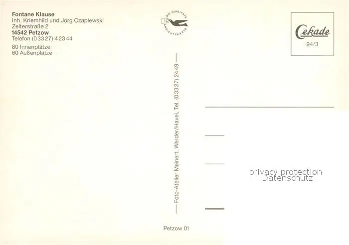 Petzow Fontane Klause Petzow postalisch nicht gelaufen nach 1965 Erhaltung siehe scans [LiesaD40] LiesID40