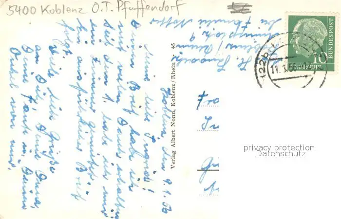 Pfaffendorf_Koblenz Blick vom Hotel Rheinkrone auf die neue Pfaffendorfer Bruecke und Schloss Pfaffendorf_Koblenz postalisch nicht gelaufen 1921-1965 Erhaltung siehe scans [WerneD78] WernPID7