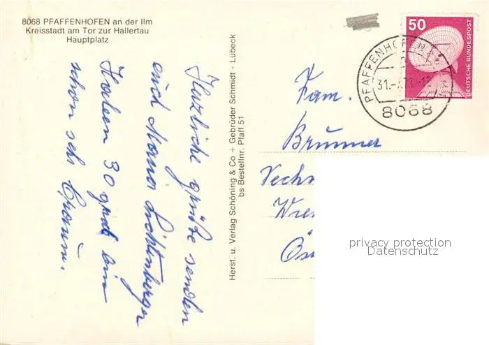 Pfaffenhofen Ilm Kategorie Alte Ansichtskarten Postkarten bx49753 Pfaffenhofen_Ilm Tor zur Hallertau Hauptplatz Maibaum Kirche Pfaffenhofen Ilm postalisch gelaufen 1973 Erhaltung siehe scans [FriedD77]