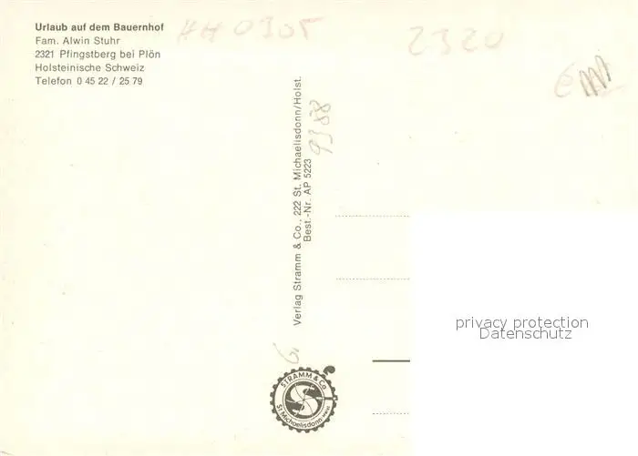 Pfingstberg Pl?n Urlaub auf dem Bauernhof Pfingstberg postalisch nicht gelaufen nach 1965 Erhaltung siehe scans [LiesaD40] LiesID40