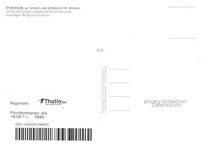 Pforzheim Schloss und Stiftskirche St Michael Pforzheim postalisch nicht gelaufen nach 1965 Erhaltung siehe scans [WerneD78] WernPID7