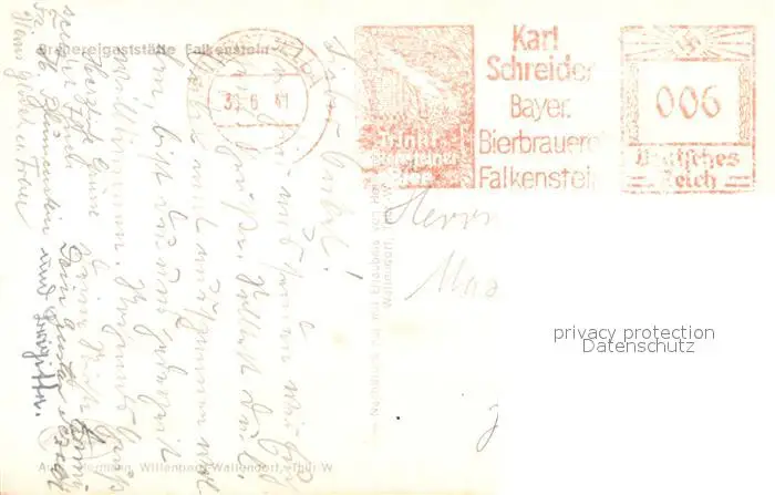 Pfronten Braueigaststaette Falkenstein Pfronten postalisch gelaufen 1941 Erhaltung siehe scans [KathaD81] Kathoren