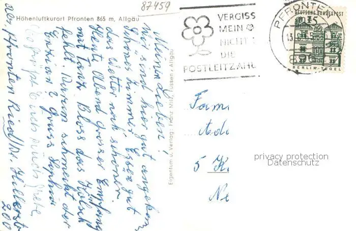 Pfronten Fliegeraufnahme Panorama m. Zugspitze Hochplatte Pfronten postalisch gelaufen 1965 Erhaltung siehe scans [LiesaD40] LiesID40