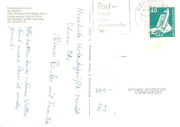 Pfronten Fremdenheim Lotter Pfronten postalisch gelaufen 1976 Erhaltung siehe scans [WerneD78] WernPID7