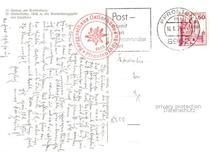 Pfronten Gemse am Breitenberg Ostlerhuette Gaishorn Alpenpanorama Pfronten postalisch gelaufen 1979 Erhaltung siehe scans [FriedD77] Frierer